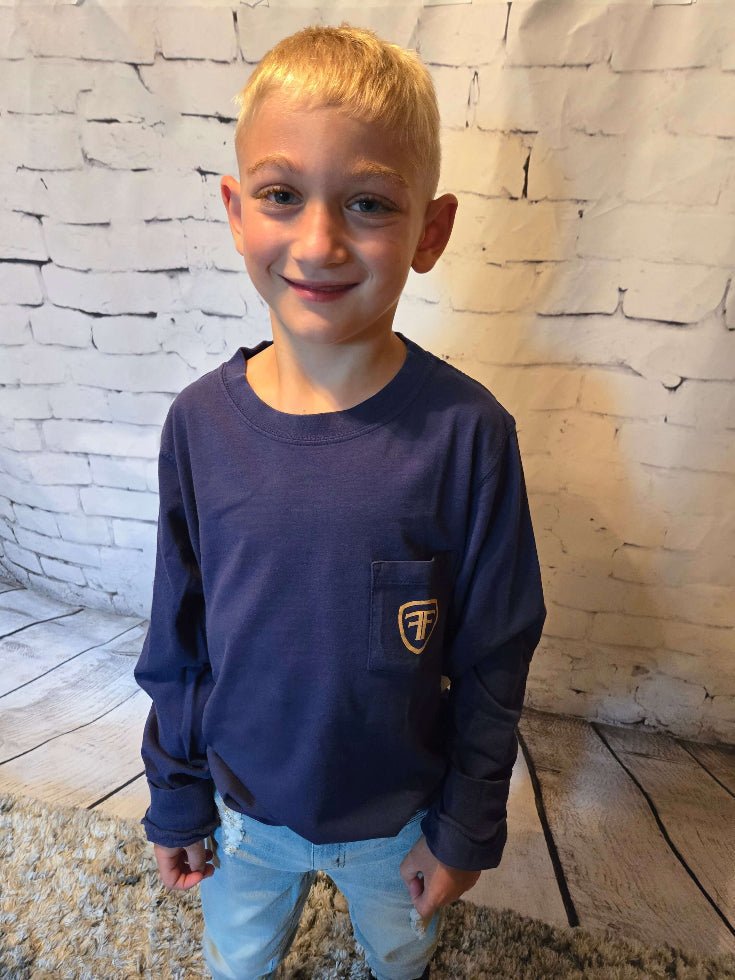 Bring the outdoors to your wardrobe with the Long Sleeve Fields & Fairway Pocket T-Shirt. Featuring the iconic FF logo on the front pocket and a striking mallard design on the back, this navy blue shirt is perfect for any outdoor enthusiast. Made from 100% cotton, it offers a soft and breathable fit for all-day comfort. Ideal for cooler weather, this long sleeve tee is versatile for both casual outings and relaxed weekends.