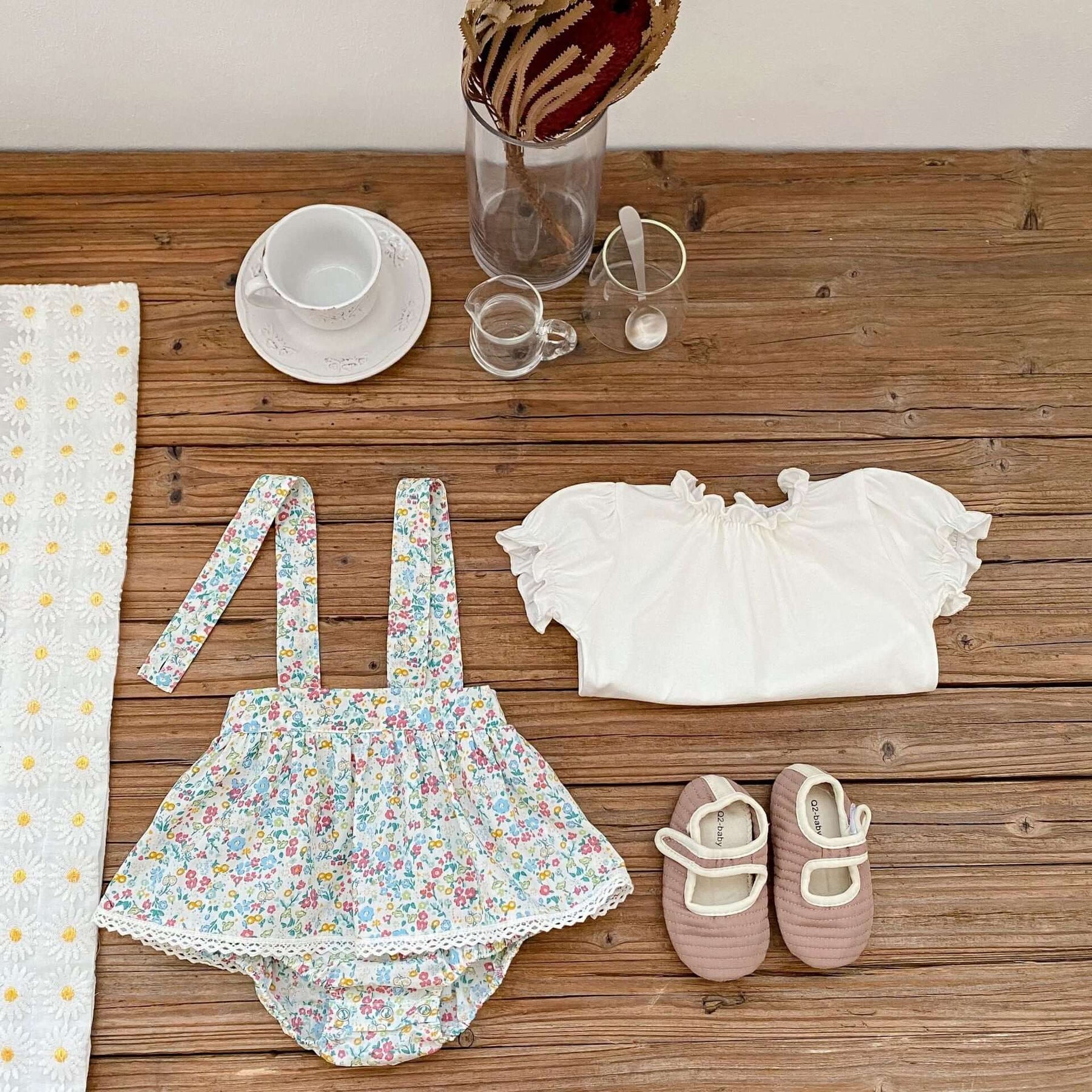 Full Moon Baby Triangle Strap Floral Romper