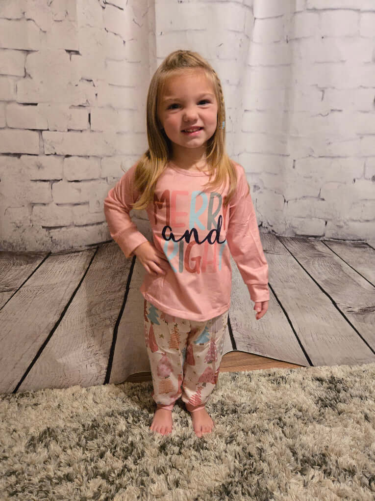 Girls Christmas Letter Print Pajamas Set - Leah