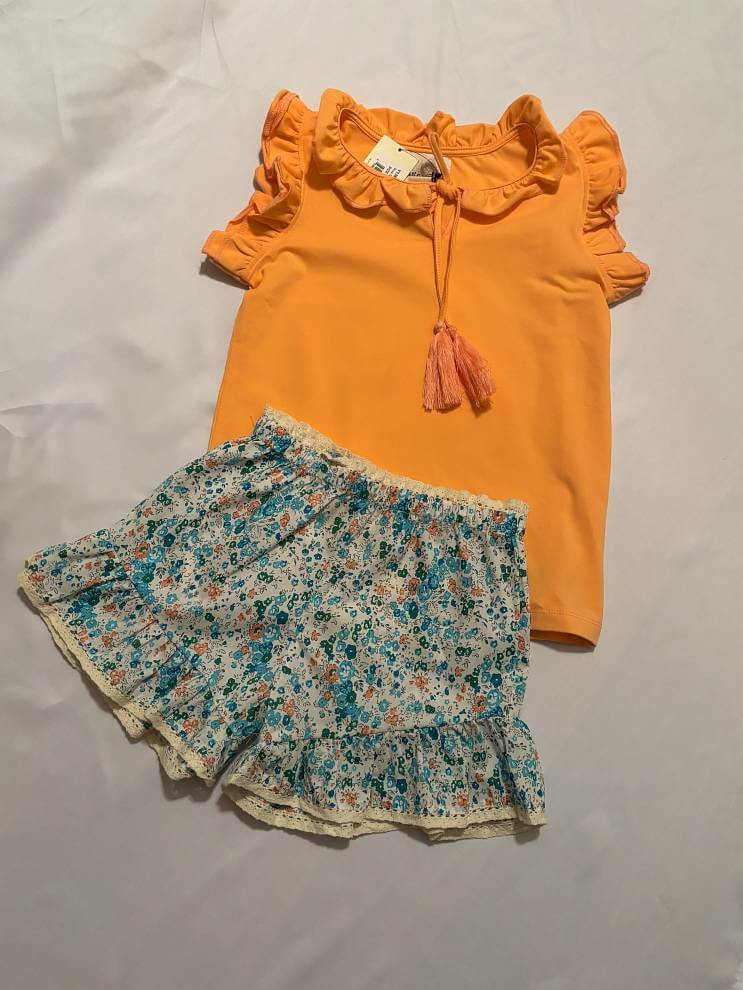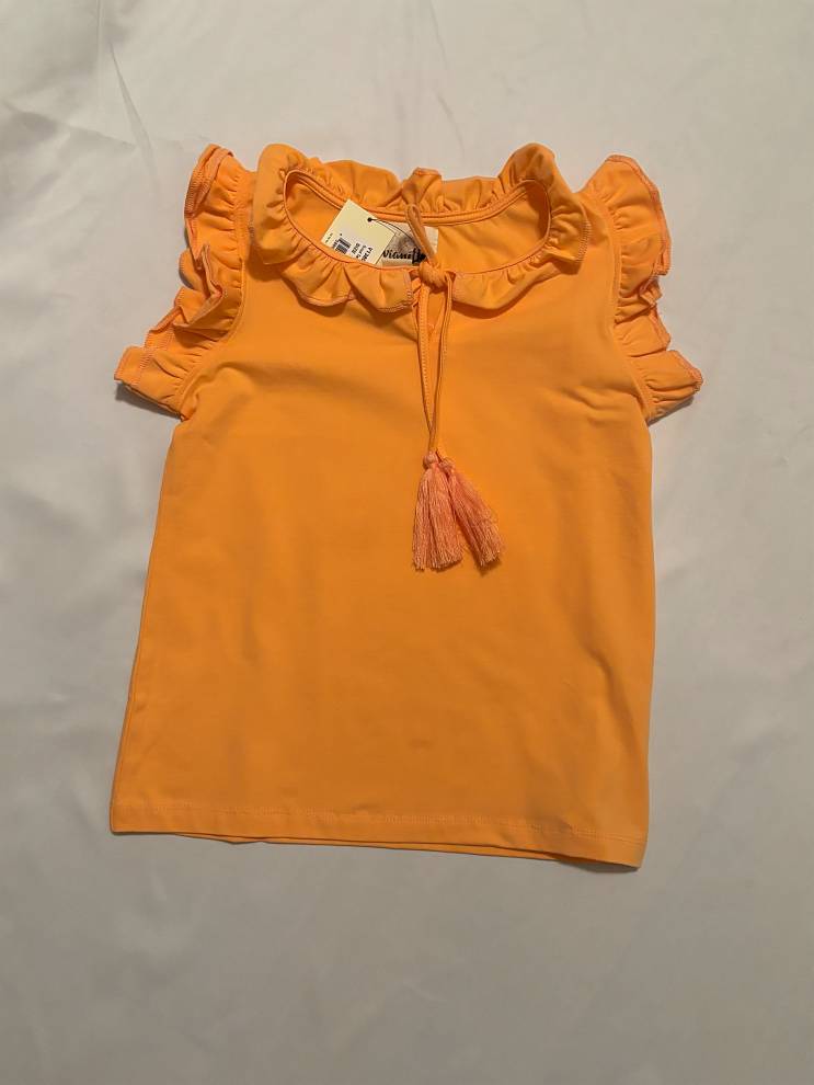 Say hello to sunshine style! The Scout Tank is a vibrant bright orange girls’ tank top that brings serious fun to summer wardrobes. With playful ruffled sleeves, a charming ruffled neckline, and adorable tassel details, this boho-inspired top is made for little ones who love to stand out.