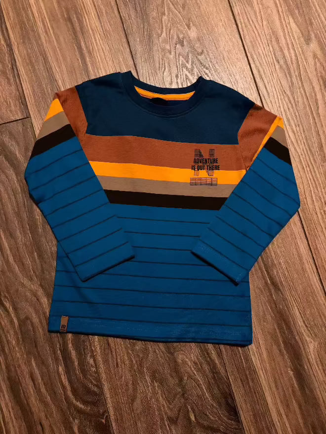 Boys' Long Sleeve The bold striped pattern in navy/marine is complemented by an eye-catching print on the bust, making it a standout piece for any occasion. Crafted from 100% soft, breathable cotton, it ensures all-day comfort and easy styling. Boys' Long Sleeve