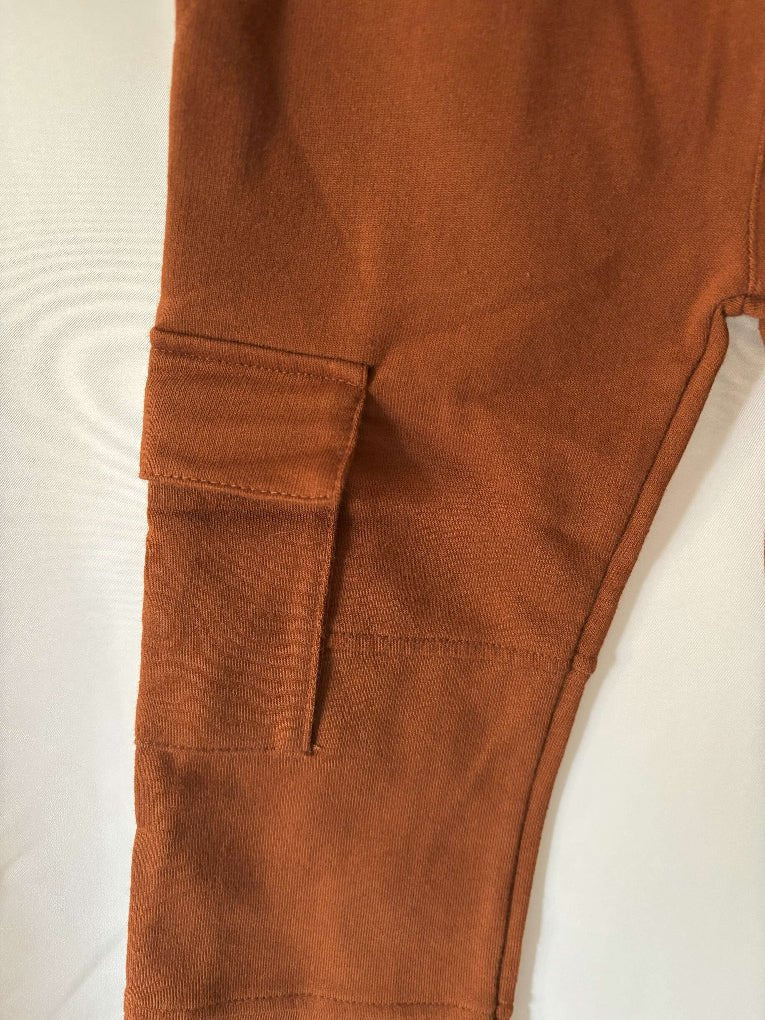 Step into fall with the perfect blend of style and ease. Our Fall Rust Cargo Pant is crafted from soft, breathable French terry fabric that feels cozy and lightweight. The elastic waistband ensures a comfortable, secure fit, while the classic cargo pockets add a practical touch to your wardrobe.