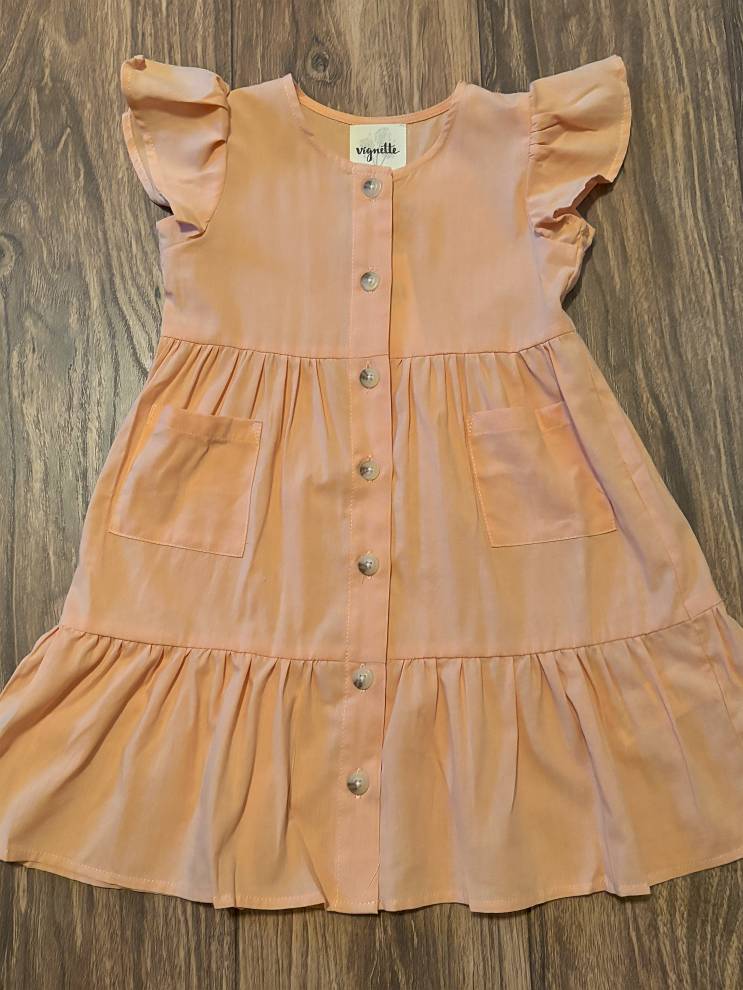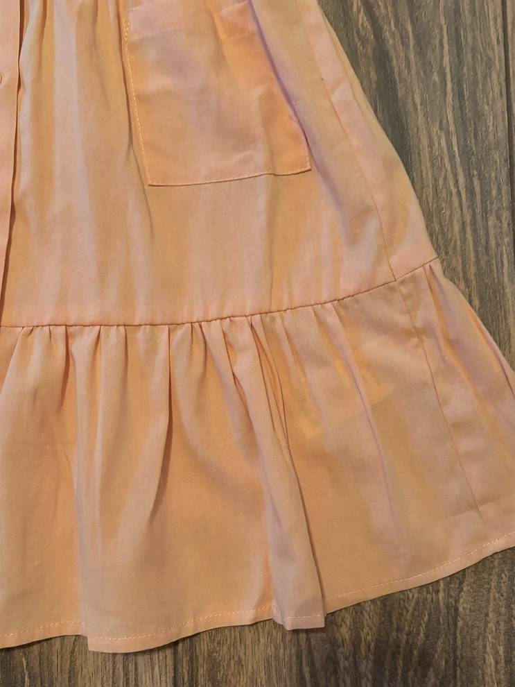 Meet your new sunny-day favorite: the Simone Dress in vibrant orange. With its flirty tiered silhouette, sweet capped sleeves, and yes — pockets! — this dress was made for twirling through golden hour or grabbing coffee on a breezy afternoon. The wooden buttons add just the right touch of charm, while the 100% cotton fabric keeps things cool, comfy, and carefree.