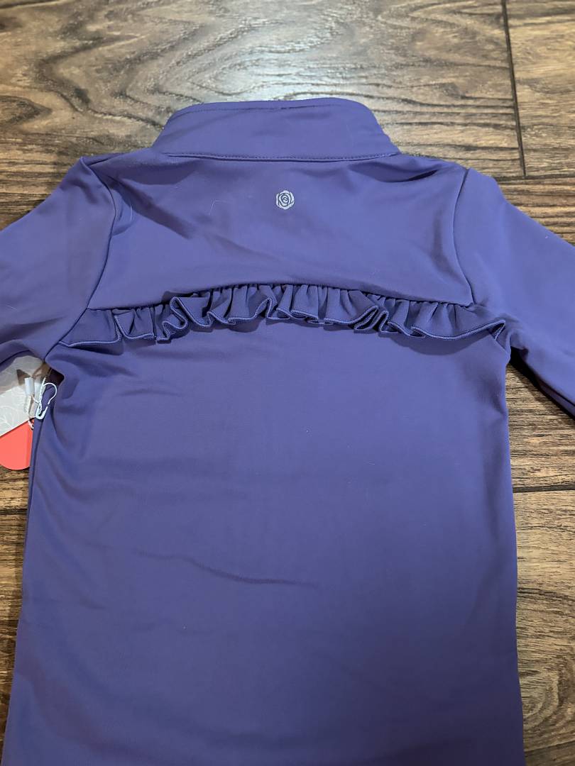 Keep her comfy, confident, and ready to move in the Mila & Rose Girls Playful Purple Full-Zip Ruffle Back Active Jacket. This sporty zip-up jacket features a sleek athletic look with a fun, feminine ruffle design across the back for the cutest twist on everyday activewear. Perfect for school, dance, travel, playdates, or layering over her favorite leggings.