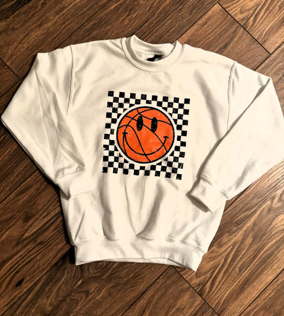Checkered Distressed Basketball Youth Crewneck Pullover