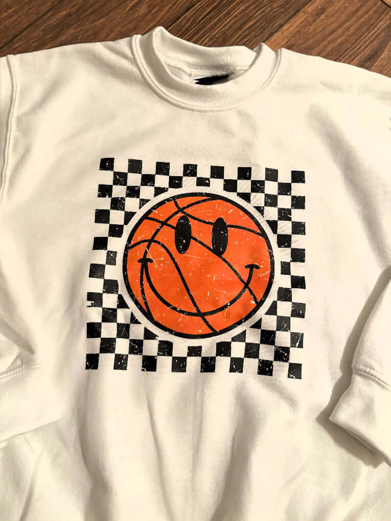 • Design: Checkered distressed basketball graphic for a unique, trendy look