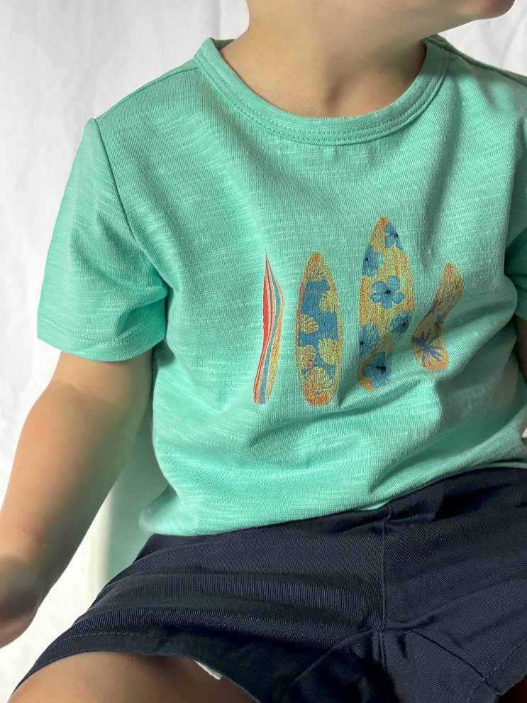 Shop Now and Make Summer Fun with the Aqua Surfboard Printed Tee!
