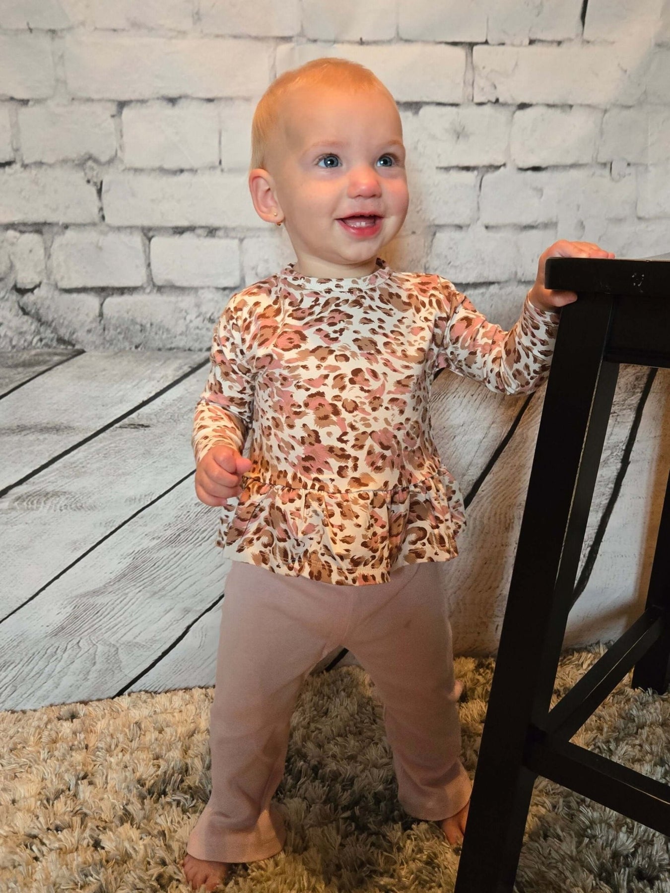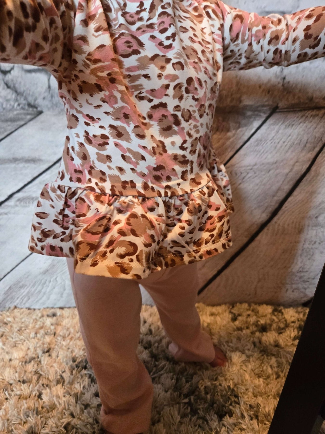 Dress your baby girl in this delightful set that combines style, comfort, and sustainability! Baby Girl's Pink Leopard Bamboo Top & Flared Leggings Set