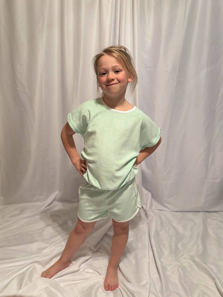 The Stacey Tee in green channels all the 1970s retro vibes with modern comfort. Crafted from super-soft terry cloth, this girls’ t-shirt brings together vintage style and everyday ease. The throwback silhouette and playful green hue make it a fun favorite for playdates, lounging at home, or pairing with our Indy Shorts for a full retro look.